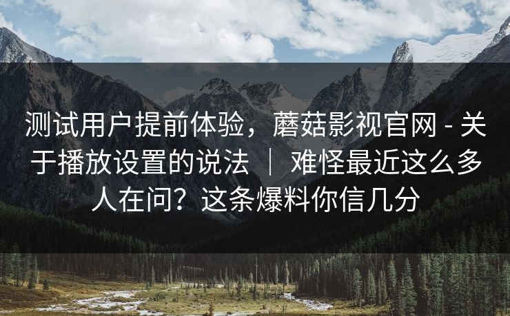 测试用户提前体验,蘑菇影视官网 - 关于播放设置的说法 | 难怪最近这么多人在问?这条爆料你信几分